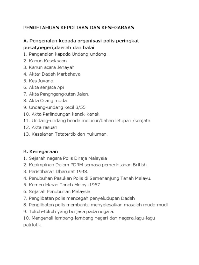 Pengetahuan Kepolisan Dan Kenegaraan A Pengenalan Kepada