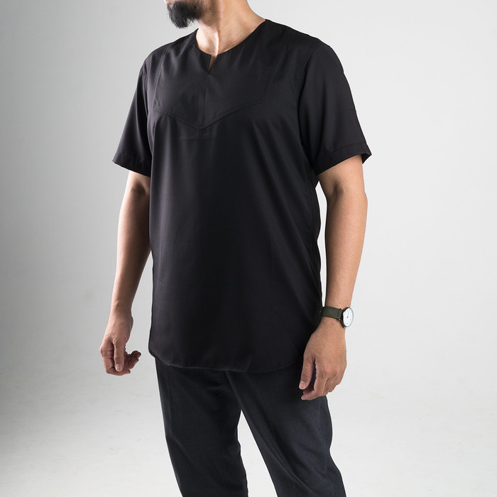 Jual Kurta Moden Minimalis Lengan Pendek Bahan Katun Black Kota