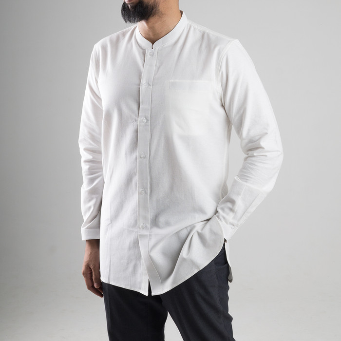 Jual Kurta Moden Minimalis Lengan Panjang Bahan Linen Putih S