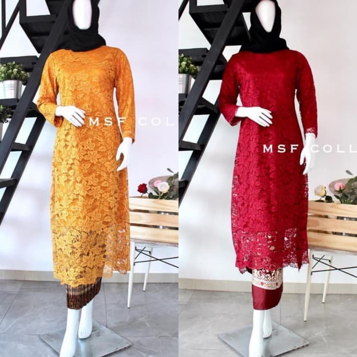 Jual Set Kebaya Brokat Tunik Kurung 3 Warna Maroon Gold Hitam