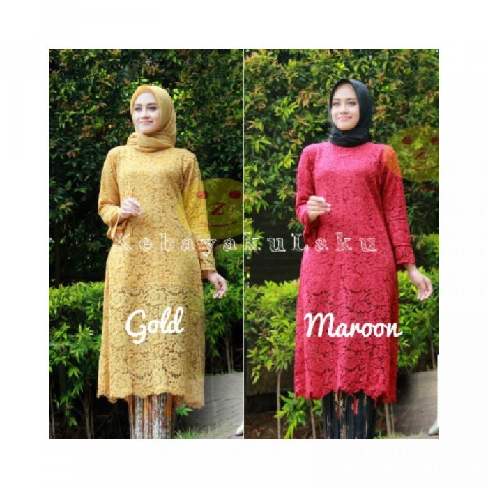Jual Atasan Kebaya Brokat Kurung Kinanti 2 Warna Gold Maroon