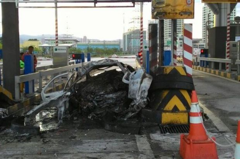 Lelaki Maut Terbakar Kereta Langgar Plaza Tol Loke Yew Semasa