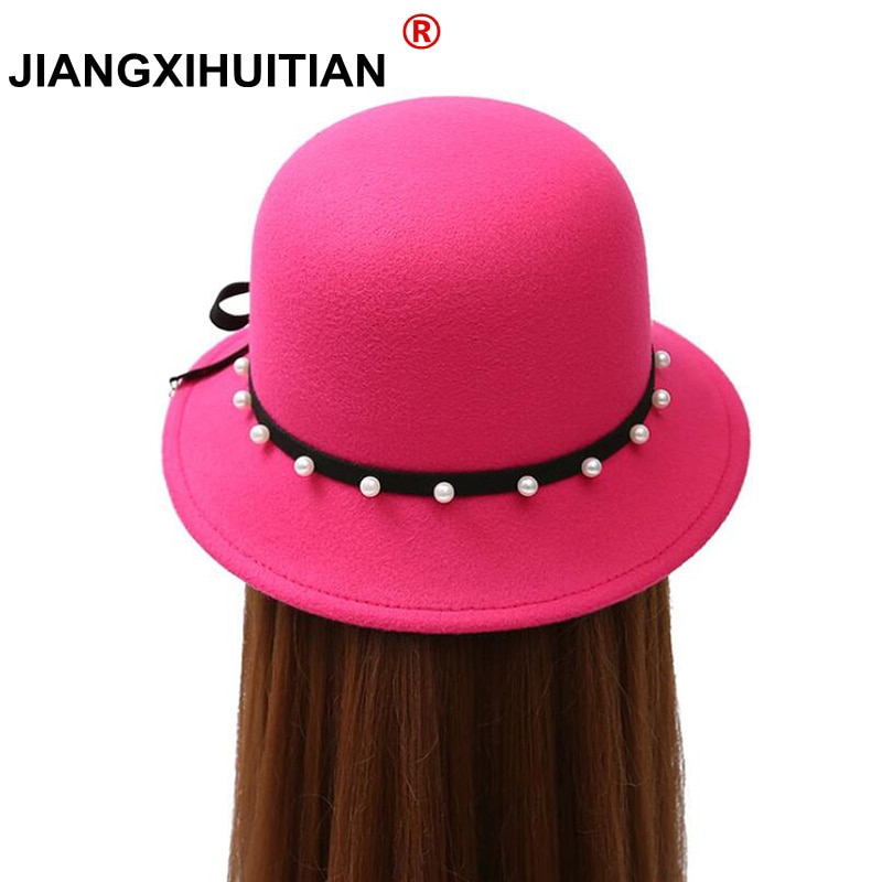 2017 Fashion Australian Woolen Fedora Hat Bowknot Pearl Pendant