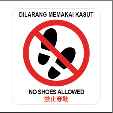 No Shoes Allowed Dilarang Memakai Kasut Vinyl Sign Sticker 2 S
