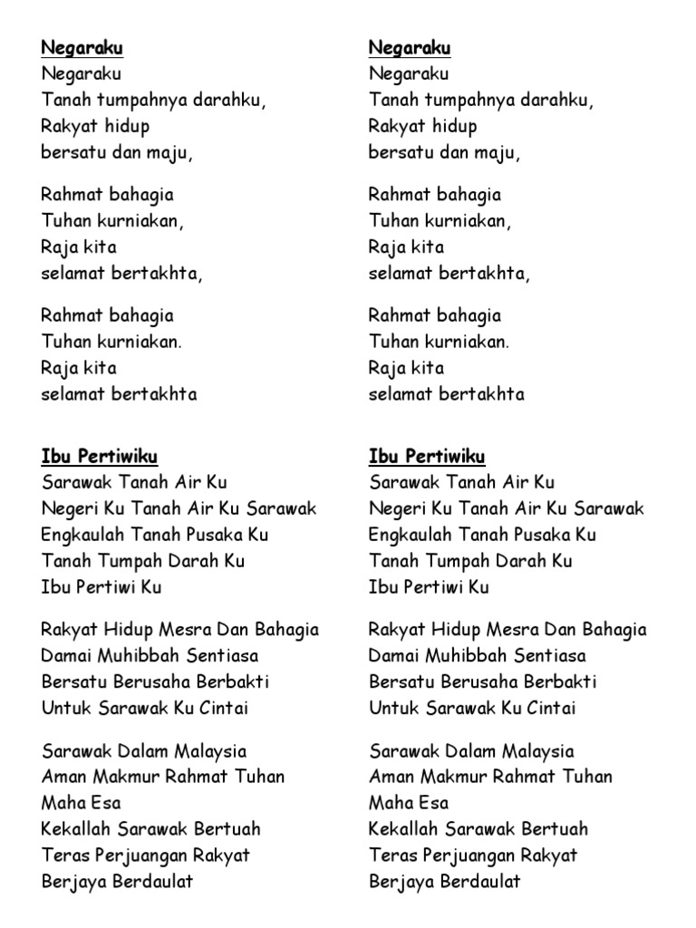 Lirik Lagu Negaraku Dan Ibu Pertiwiku