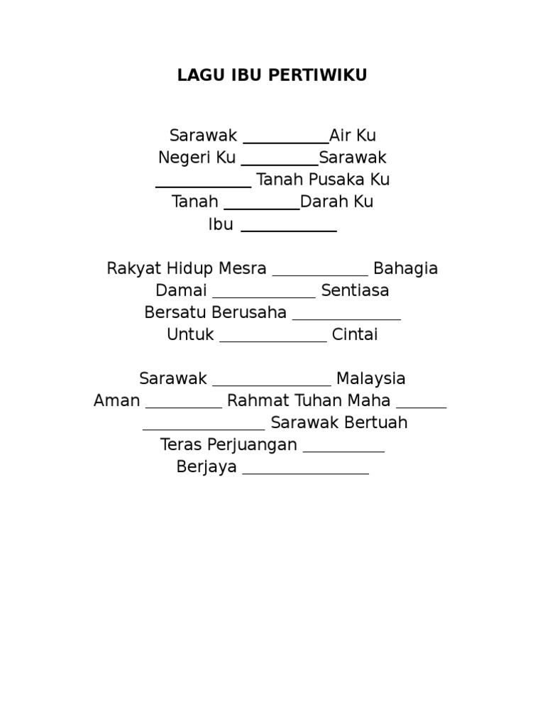Lirik Lagu Negeri Sarawak Ibu Pertiwiku
