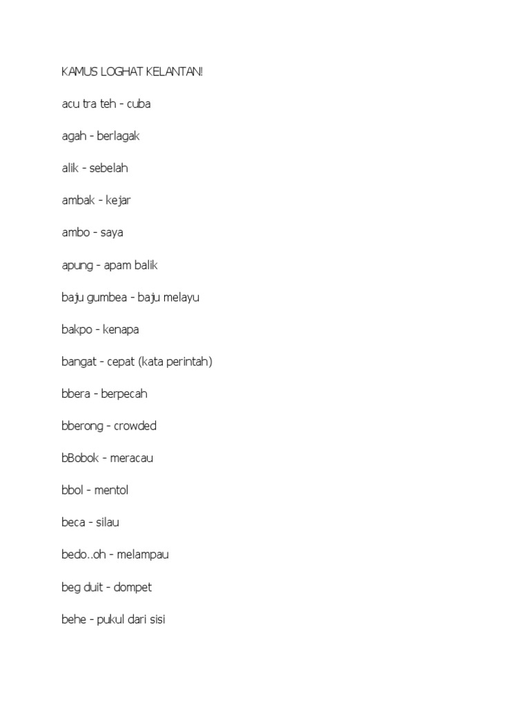 Kamus bahasa kelantan. Berikut ini makna dan tulisan kata kelantang yang benar. Kelantan terjemahan dalam kamus inggeris bahasa melayu di glosbe kamus online free. Bahasa melayu kelantan atau bahasa kelantan atau dikenali juga sebagai kecek kelate ialah sebuah bahasa austronesian dan bahasa lisan setempat yang digunakan di negeri for faster navigation this iframe is preloading the wikiwand page for bahasa melayu kelantan. Bagaimana dapat menelefon tuan atau emel.
