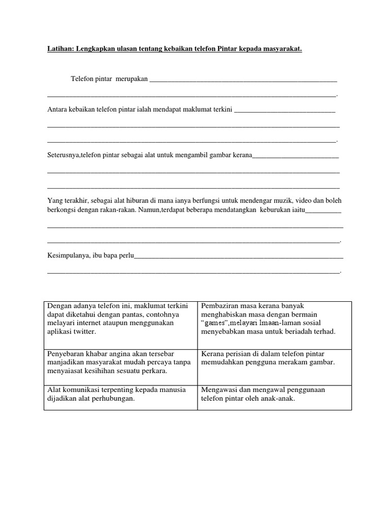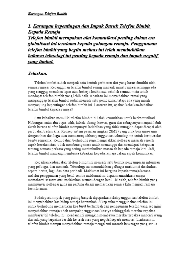 Karangan Kebaikan Dan Keburukan Telefon Docsity