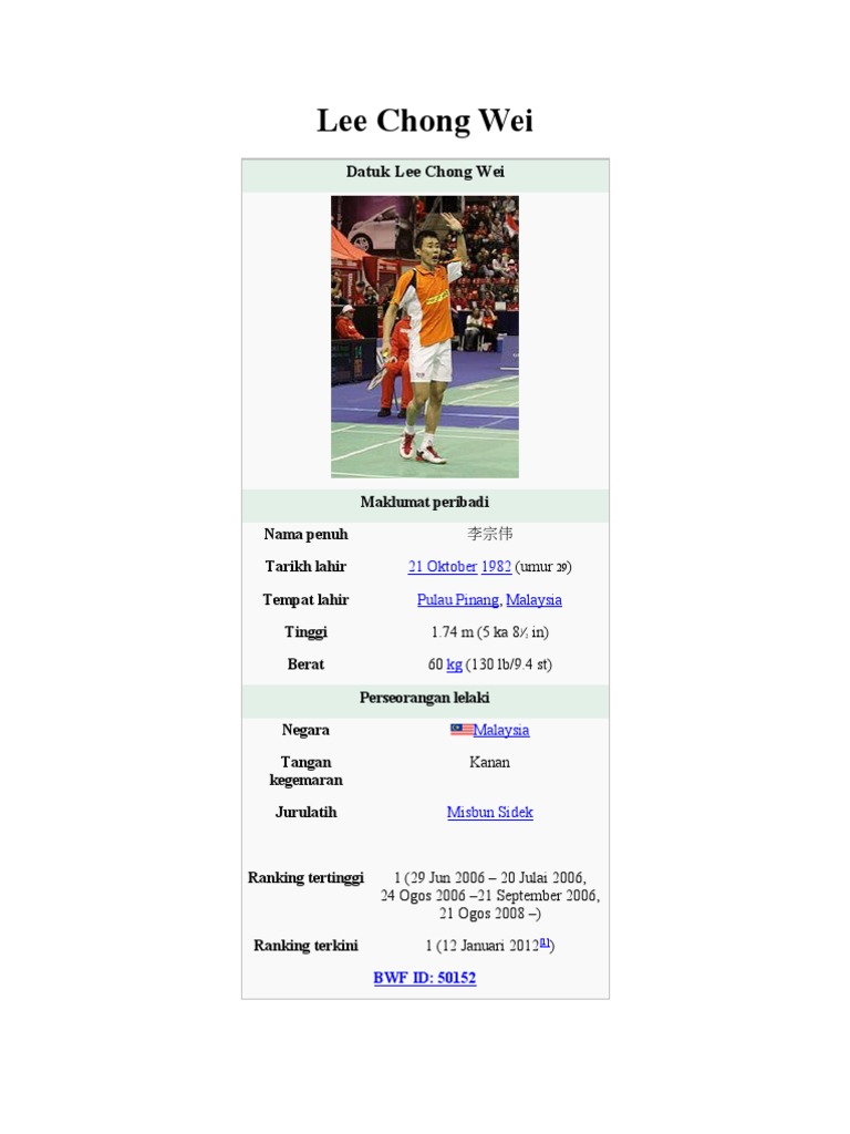 Lee Chong Wei Wikipedia Bahasa Indonesia Ensiklopedia Bebas
