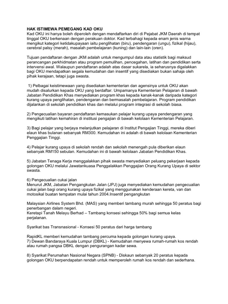Keistimewaan Pemegang Kad Oku Berdaftar Di Malaysia Malaysian