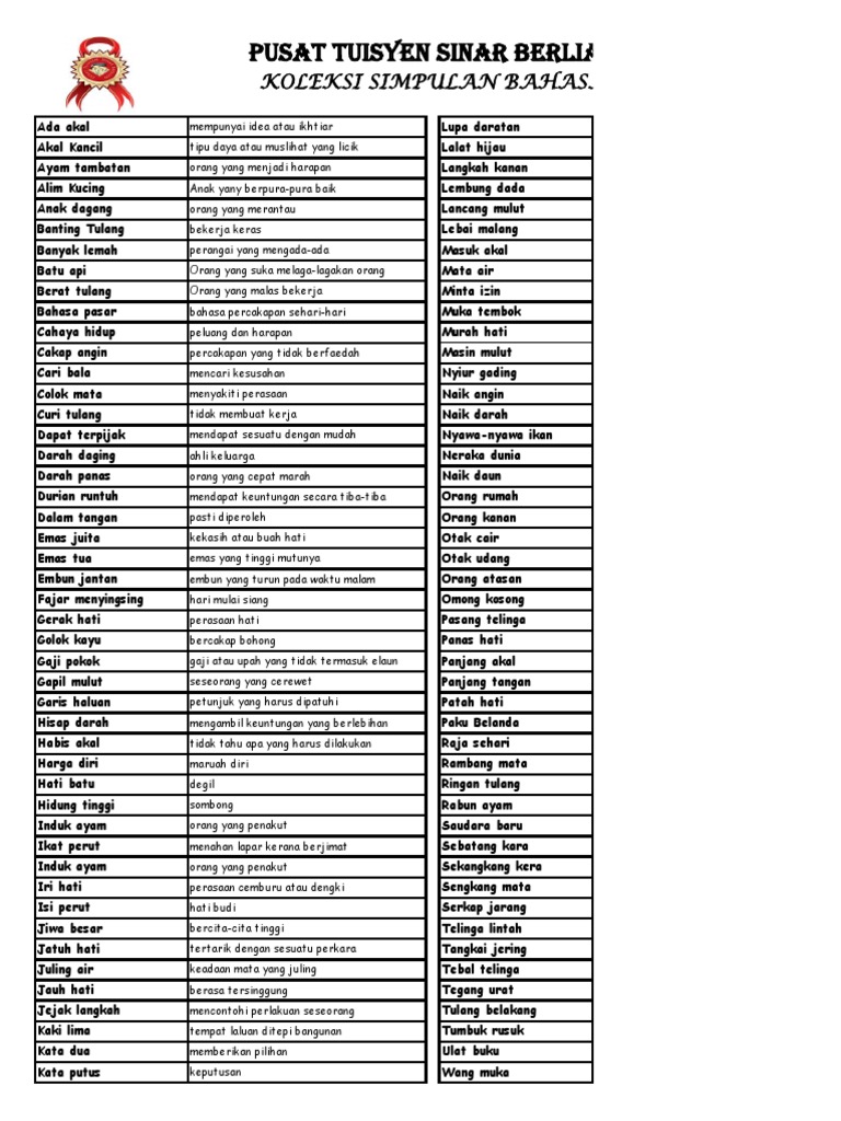 Koleksi Simpulan Bahasa Sekolah Rendah Koleksi Bbm Portal