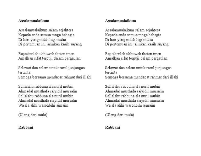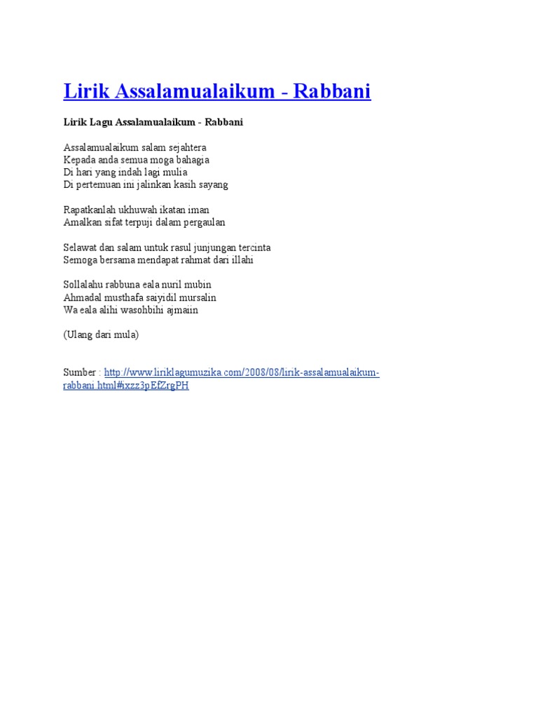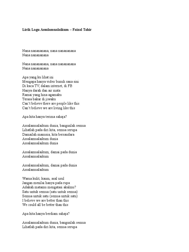 Lirik Lagu Assalamualaikum Wr Wb Wattpad