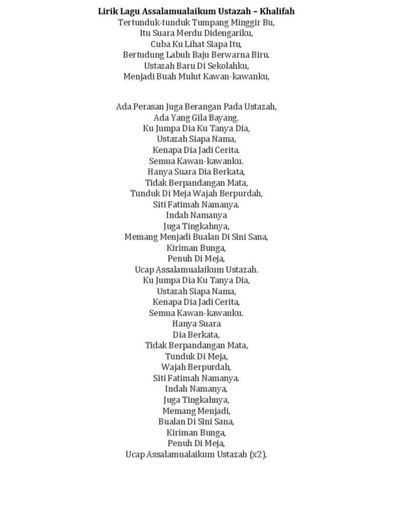 Lirik Lagu Assalamualaikum Ustazah