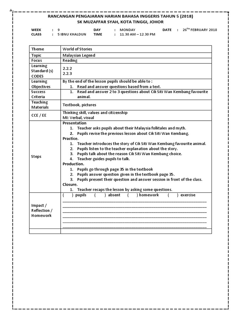 Lesson Plan Year 5 Malaysian Legends Lesson Plan Microsoft