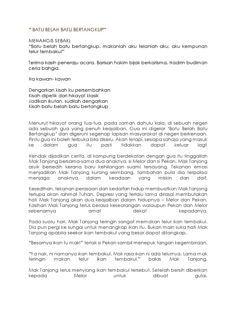 Mak tanjung daan dulikan bujokkan melur dan pekan lakak iye die pun manggel gue batu ballah batu betangkup biar di. Batu belah batu bertangkup was the directorial debut of jamil sulong who was only the third malay film talent after haji mahadi and p. Batu batangkup pun langsung menelan kedua anak nakal tersebut masuk kedalam tanah. Melur dan pekan takut kalu kalu umaknye merajok dan pagi ke gue batu ballah batu betangkup.