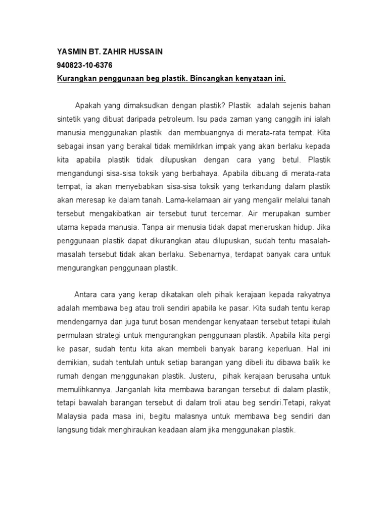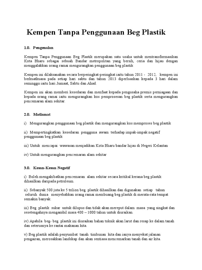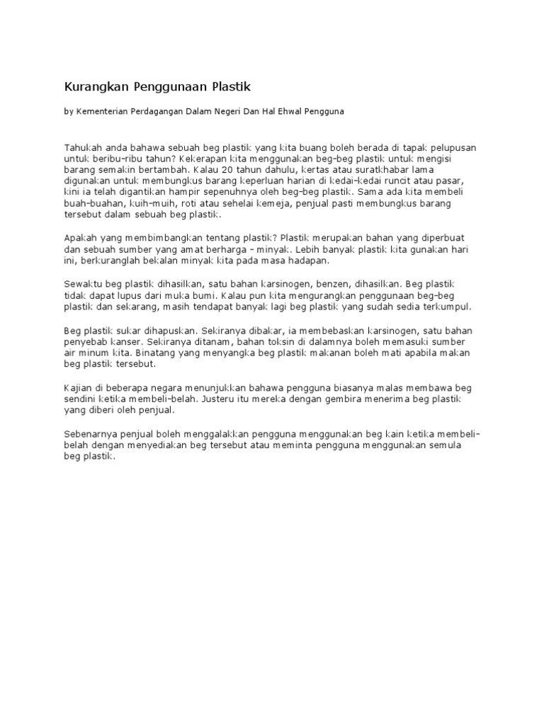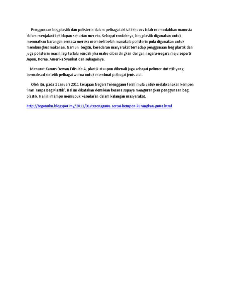 Doc Bahaya Penggunaan Beg Plastik Kesedaran Masyarakat Tahap