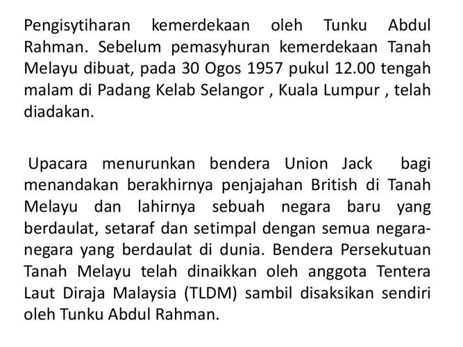 Pengisytiharan Kemerdekaan Di Tanah Melayu Perjalanan Kemerdekaan