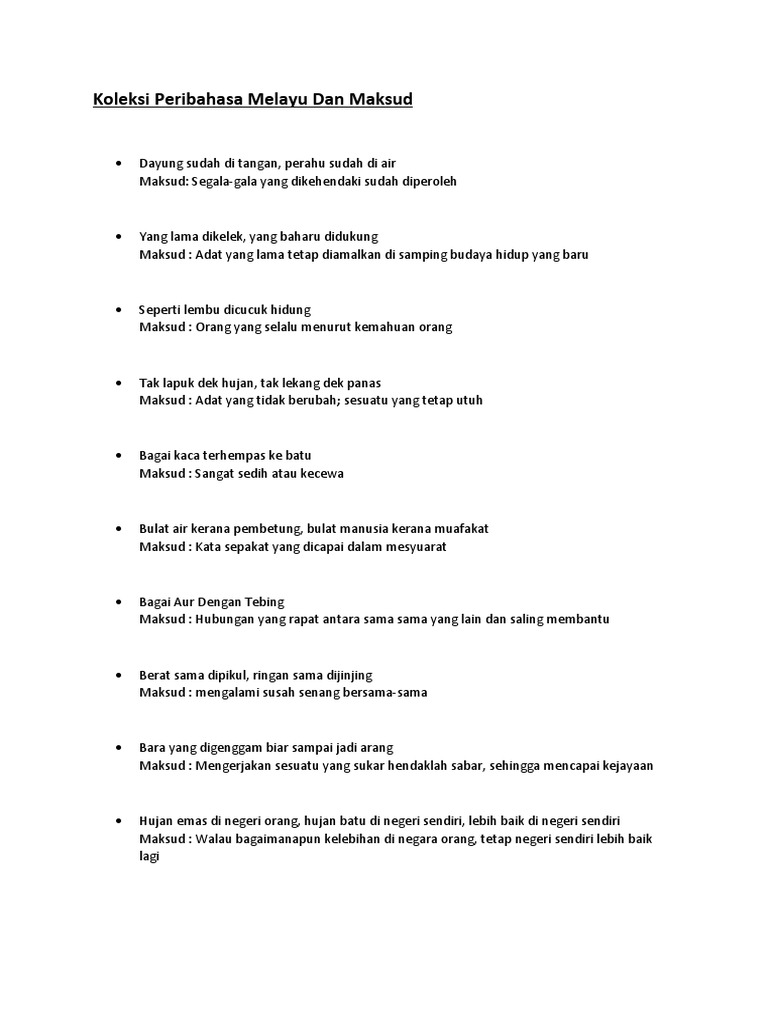 Pdf Koleksi Peribahasa Melayu Simpulan Bahasa Dan Maksud