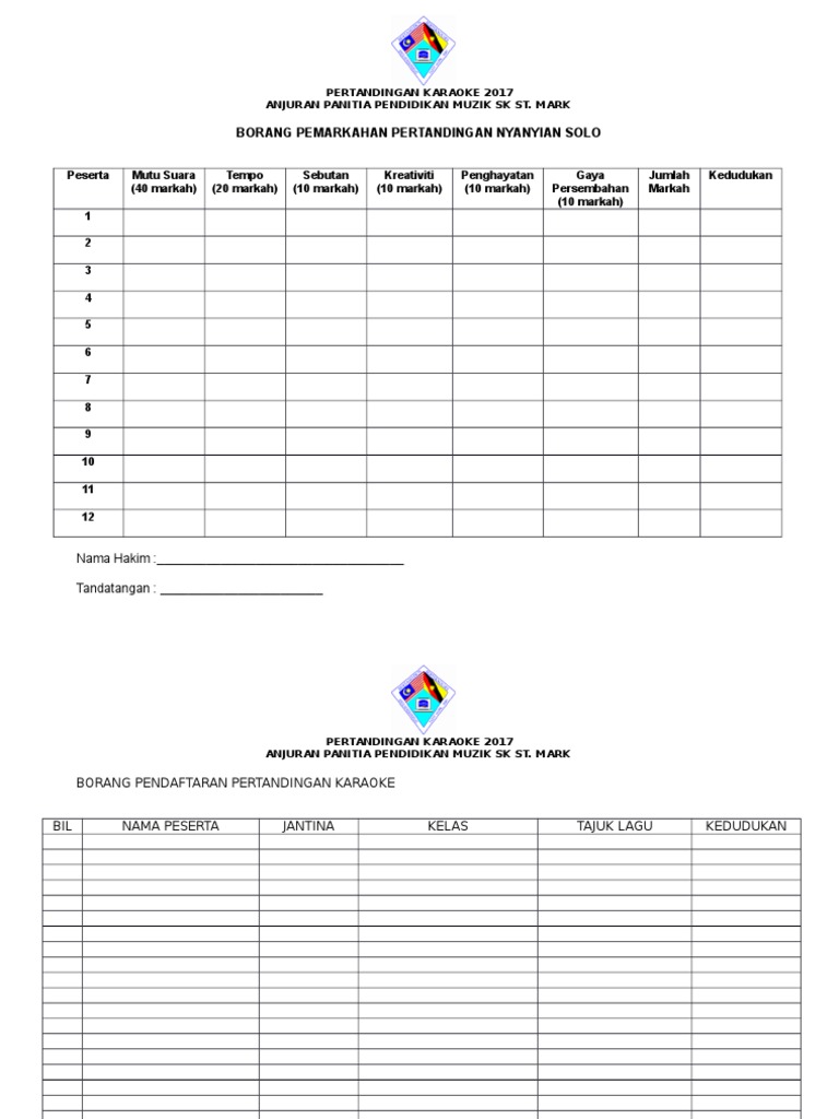 Borang Pemarkahan Pertandingan Karaoke 2017