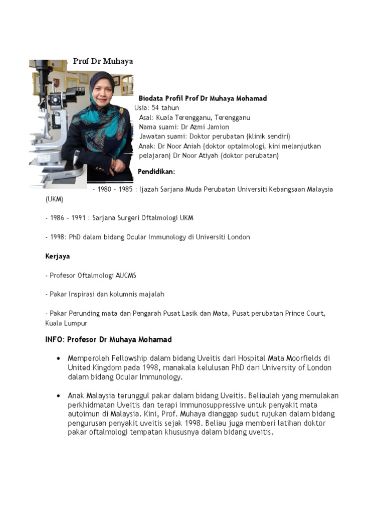 Biodata Datuk Prof Dr Muhaya Mohamad Pakar Mata Di Asia Ilabur