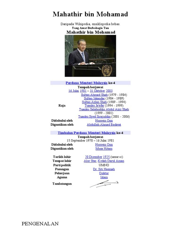 Mahathir Bin Mohamad Wikipedia Bahasa Melayu Ensiklopedia Bebas