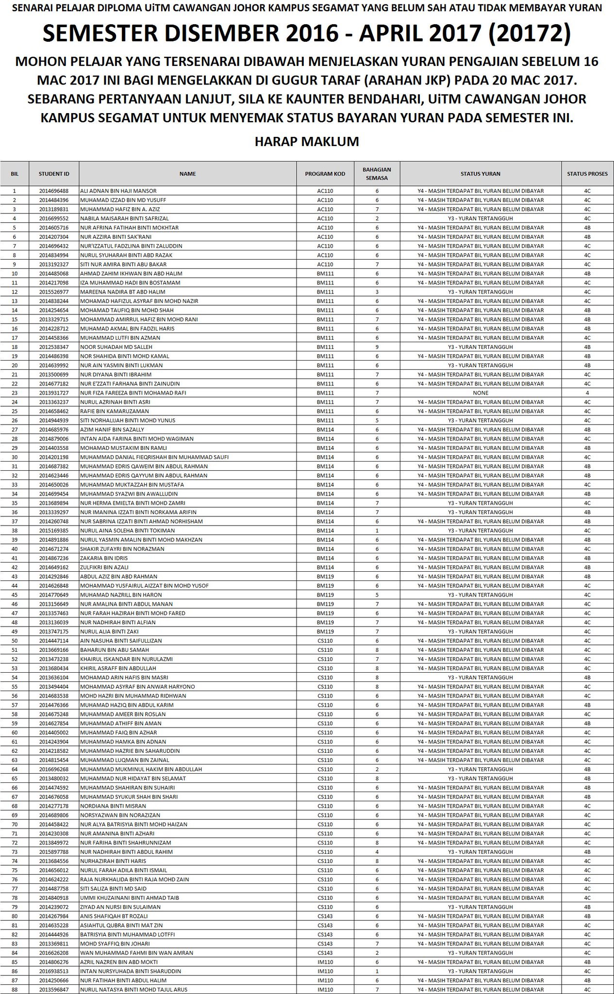 Hea Uitm Johor On Twitter Pelajar Diploma Uitm Cawangan Johor
